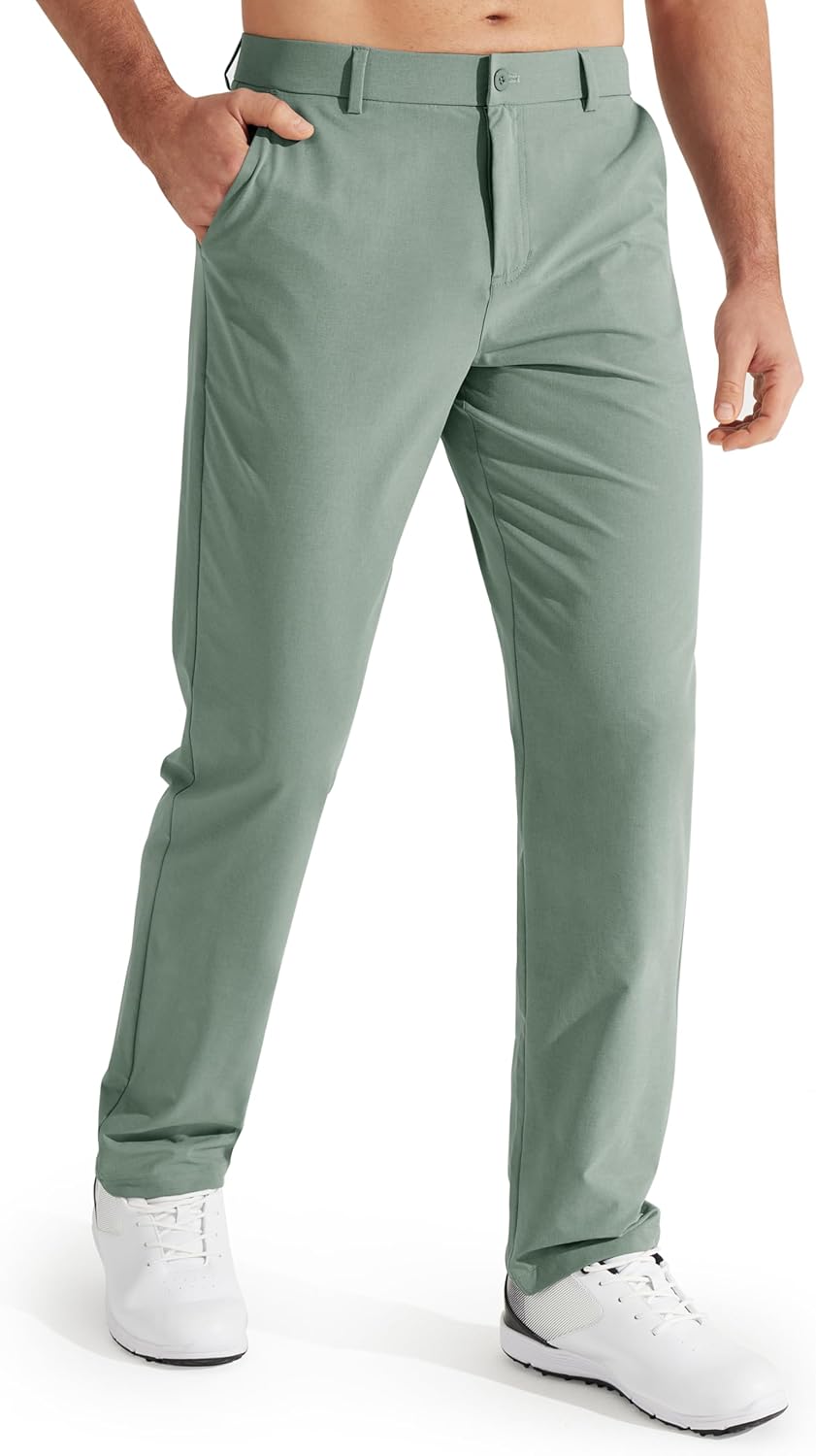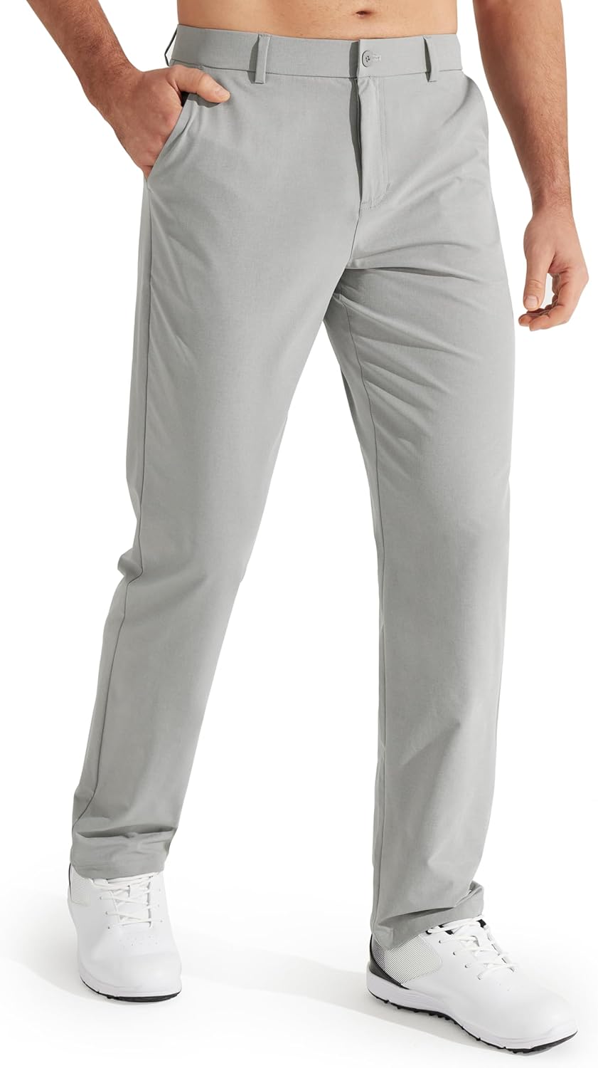 Comfort Fabric: Lightweight, stretchy, quick dry, moisture wicking fabric keeps you dry and cool all day, gentle stretch and shape-retention, water-resistant capacity to help resist light rain for a short time. PS: Although the pants may arrive with some creases due to packaging, a simple water wash will eliminate them Detail designs: Belt loops allow these mens dress pants fit to your waistlines, button closure with a zippered fly, 3D-cutting design fits most men's body type, sits at the waist with a straight leg 4 Functional Pockets: 2 convenient deep front pockets and 2 back snap fastener pockets for storage, can put your phones, golf gloves and other small items Multiple selection: The mens casual pants are available in three inner lengths-30inch/ 32inch/ 34inch, you can choose the length that suits your height according to the size chart Suitable Occasion: Libin mens slacks fit golf sports, walking, hiking, climbing, workout, traveling and daily life, also can be worn as dress pants or work pants for business offices; Please DO NOT select a size just as per your experience, pay attention to the size chart and measurement guide, measure yourself to ensure the best fit