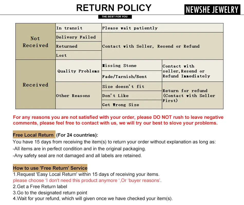 Shipping: Send the package within 48 hours