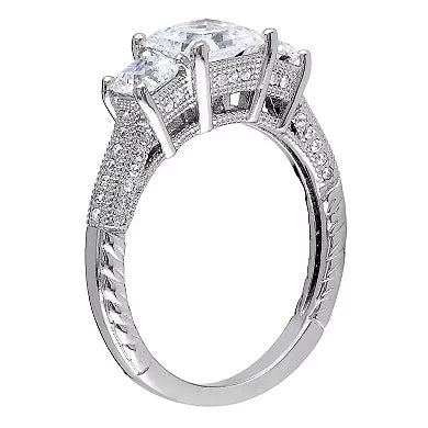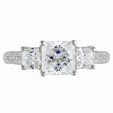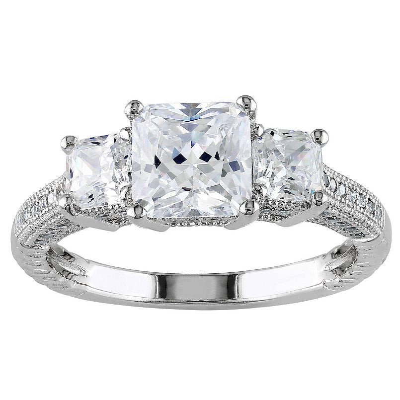 Sterling Silver Cubic Zirconia 3-Stone Engagement Ring