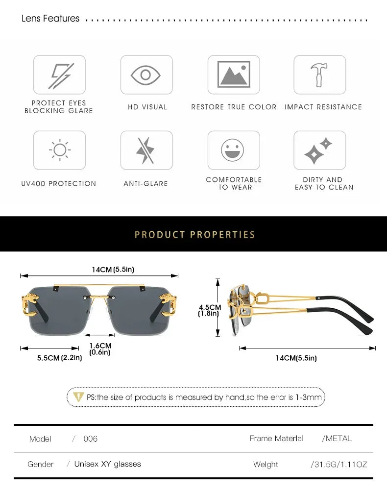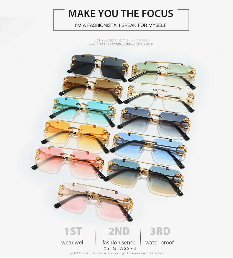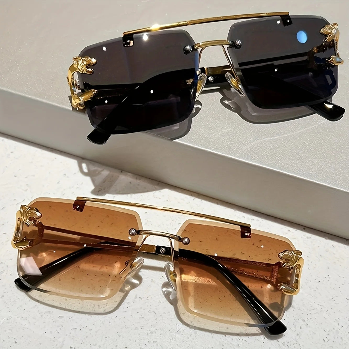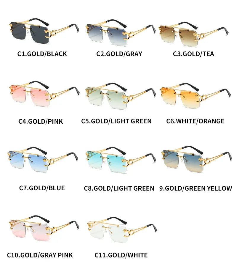 2 pcs Square Rimless Tint Color UV 400 Protection
