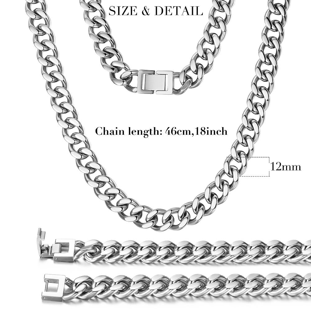 12mm Silver Hip Hop Cuban Chain Necklace