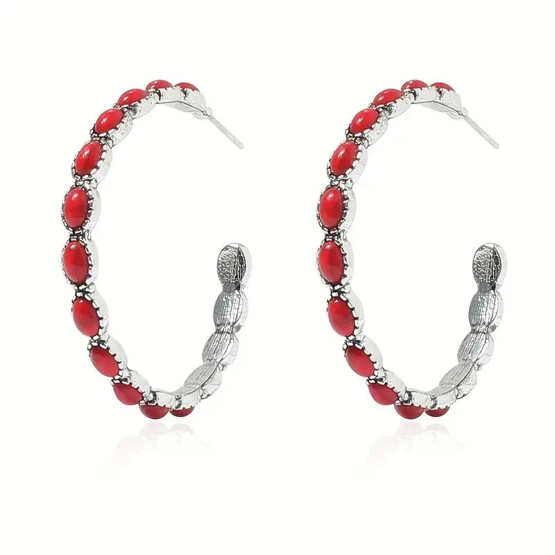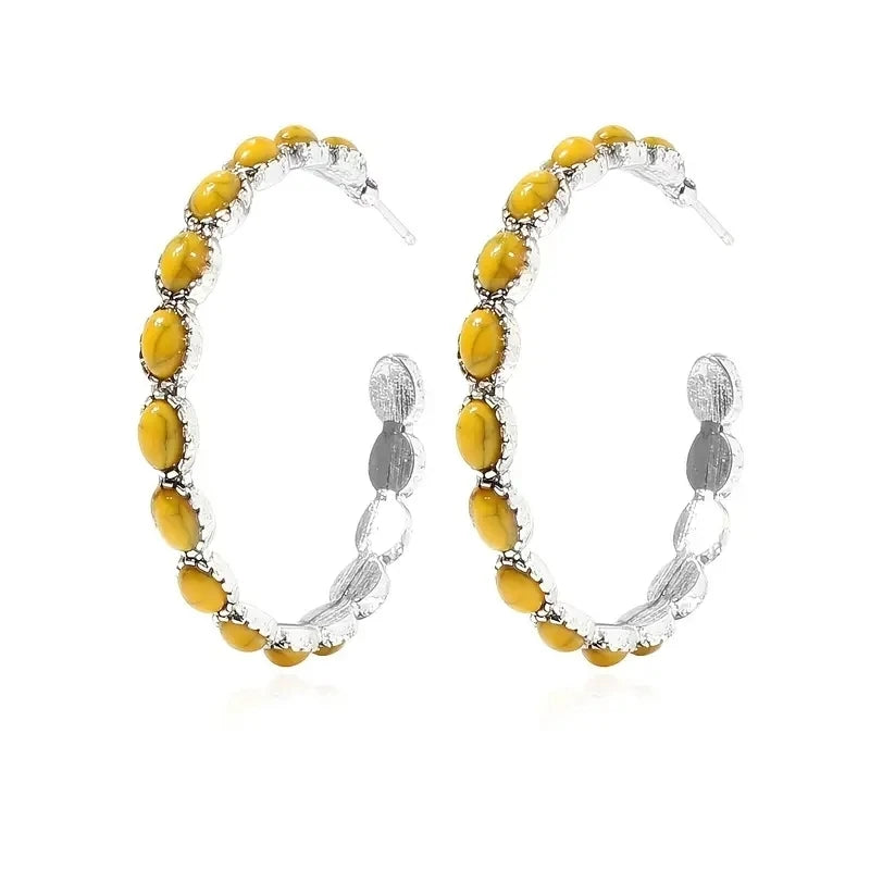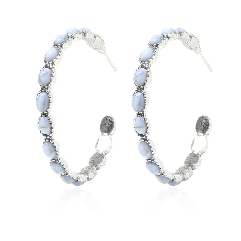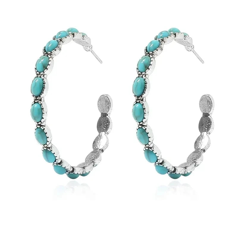 style: Simulated Turquoise Earrings,Hoop Earrings
