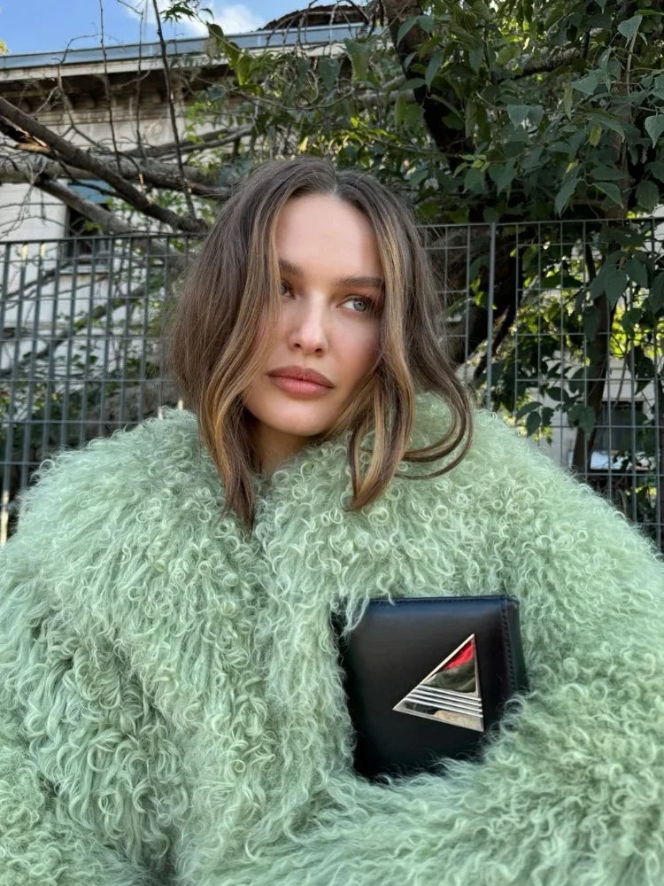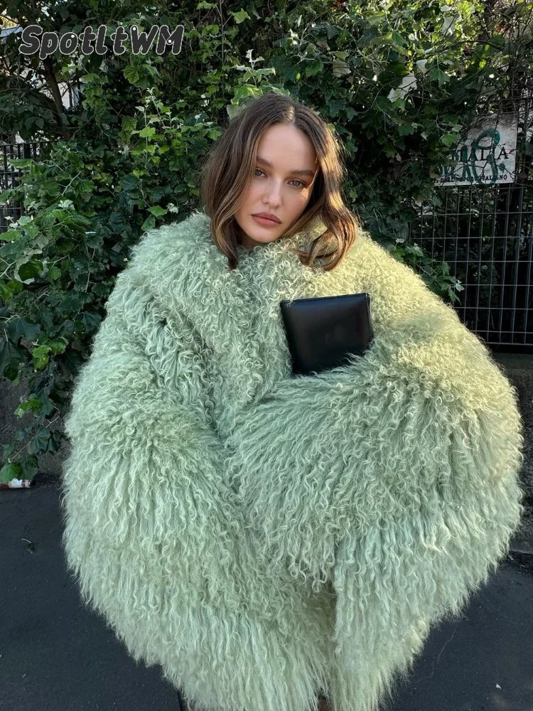 Green Fashion Oversize Plush Fur Coat For Women Elegant Soft Warm Long