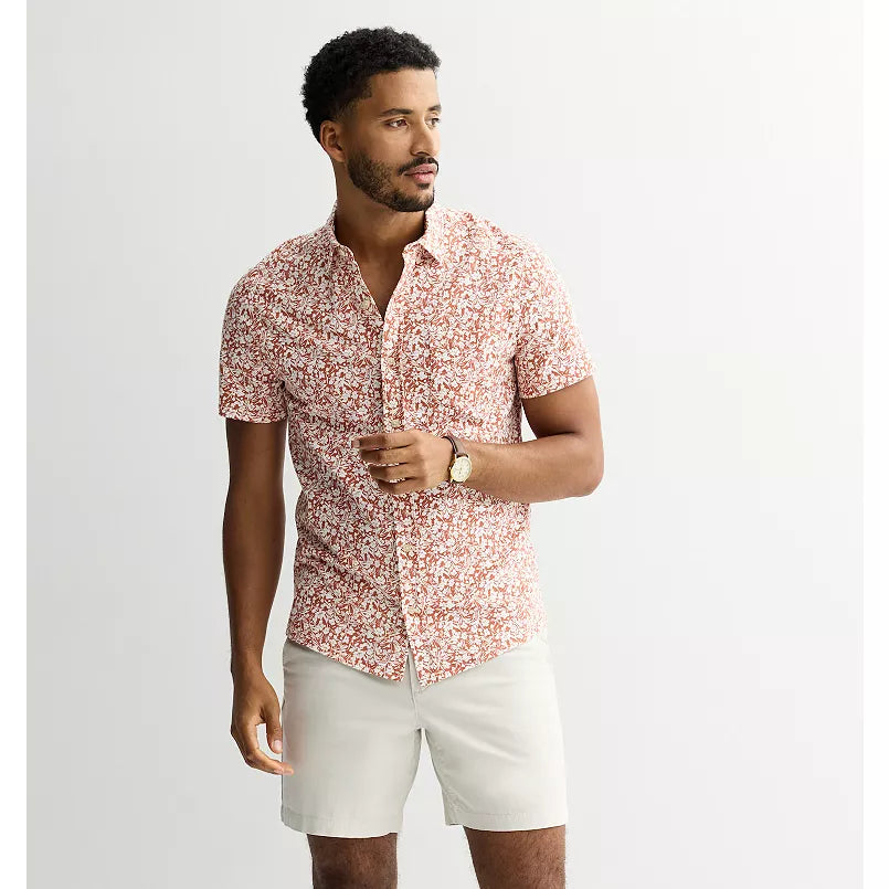 S / Coral Leaf Print -